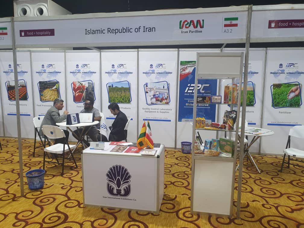 پاویون جمهوری اسلامی یران با مشارکت شرکتهای برتر صنایع غذایی و نوشیدنی ایرانی در نمایشگاه بین المللی غرب آفریقا؛ با رویکرد معرفی توانمندی شرکت های مواد غذایی و نوشیدنی، ورود به بازار غرب آفریقا جهت رشد و افزایش صادرات غیر نفتی در حال برگزاری می باشد.